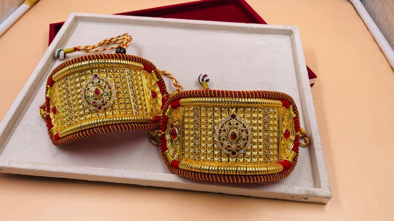 Rajputi Baaju (Bajuband) is a beautiful and traditional piece of jewellery that reflects the royal heritage of Rajasthan. Designed with fine craftsmanship and elegant details, this armlet adds a royal touch to any Rajputi outfit. Perfect for weddings, festivals, and special occasions, it enhances the beauty of traditional poshak and bridal looks. Lightweight, stylish, and inspired by royal Rajputana culture, this Rajputi Baaju is a must-have for every jewellery collection.