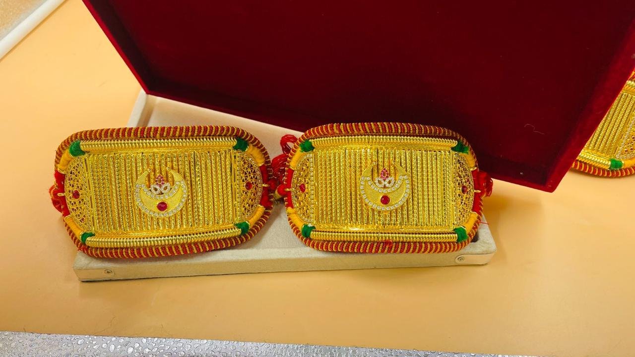 Rajputi Baaju (Bajuband) is a beautiful and traditional piece of jewellery that reflects the royal heritage of Rajasthan. Designed with fine craftsmanship and elegant details, this armlet adds a royal touch to any Rajputi outfit. Perfect for weddings, festivals, and special occasions, it enhances the beauty of traditional poshak and bridal looks. Lightweight, stylish, and inspired by royal Rajputana culture, this Rajputi Baaju is a must-have for every jewellery collection.