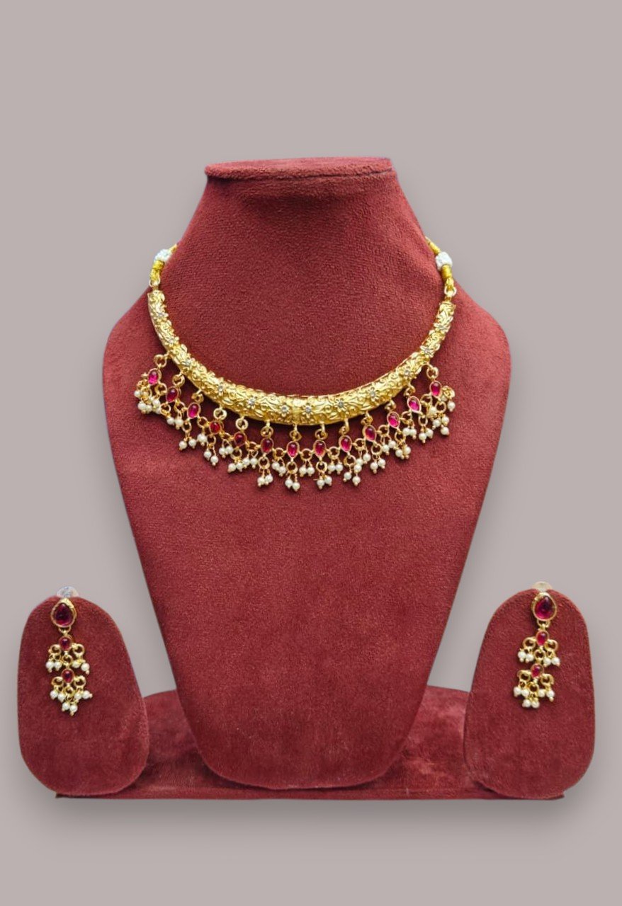 • Traditional Gold Plated Necklace Set for Women will complement any Indian attire. Women Love Jewelry as it not only enhances their beauty, but also gives them the social confidence. Make your moment memorable with this range. This jewel set features a unique one of a kind traditional embellish with antic finish. Earrings are very easy to use being lightweight and has a design which makes it very comfortable.