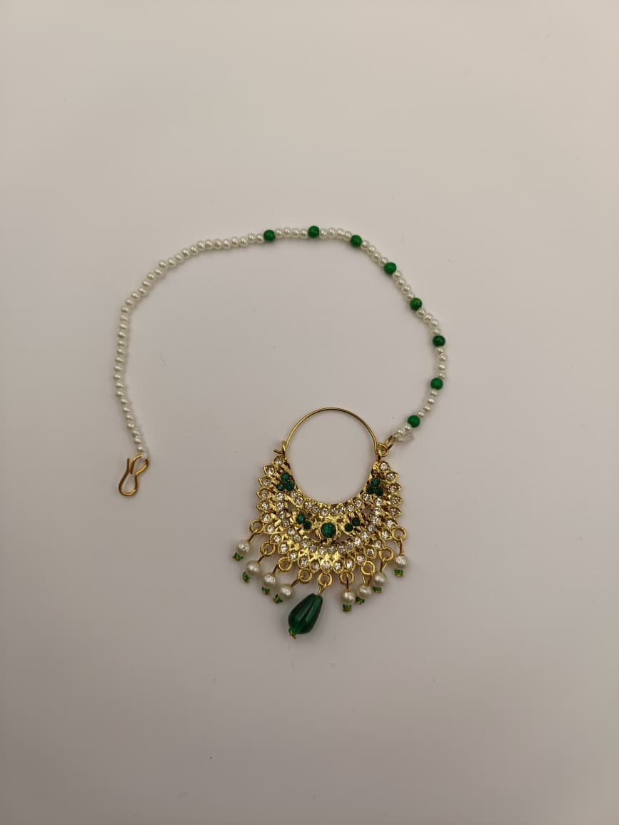 Perfect for weddings, traditional events, and special occasions, this nath pairs beautifully with Rajputi poshak and bridal outfits. Made with high-quality imitation materials, it is lightweight, comfortable to wear, and gives a rich royal appearance.