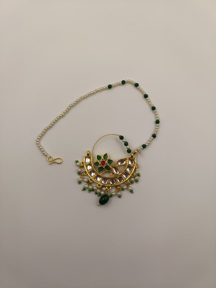 Perfect for weddings, traditional events, and special occasions, this nath pairs beautifully with Rajputi poshak and bridal outfits. Made with high-quality imitation materials, it is lightweight, comfortable to wear, and gives a rich royal appearance.