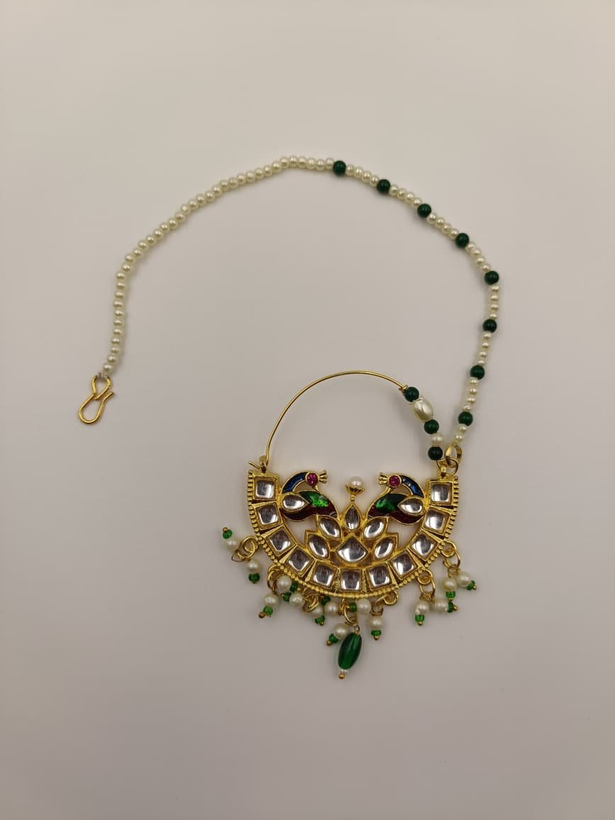Perfect for weddings, traditional events, and special occasions, this nath pairs beautifully with Rajputi poshak and bridal outfits. Made with high-quality imitation materials, it is lightweight, comfortable to wear, and gives a rich royal appearance.