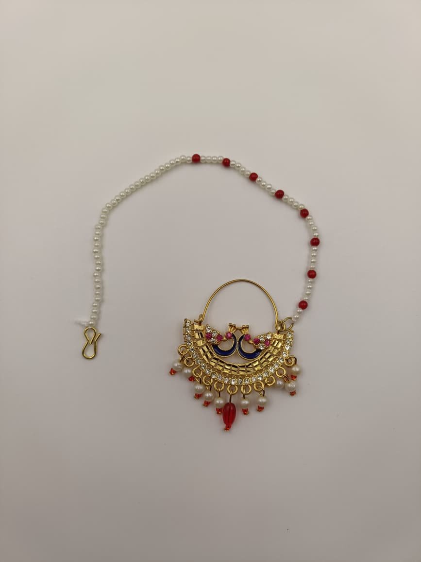 Perfect for weddings, traditional events, and special occasions, this nath pairs beautifully with Rajputi poshak and bridal outfits. Made with high-quality imitation materials, it is lightweight, comfortable to wear, and gives a rich royal appearance.