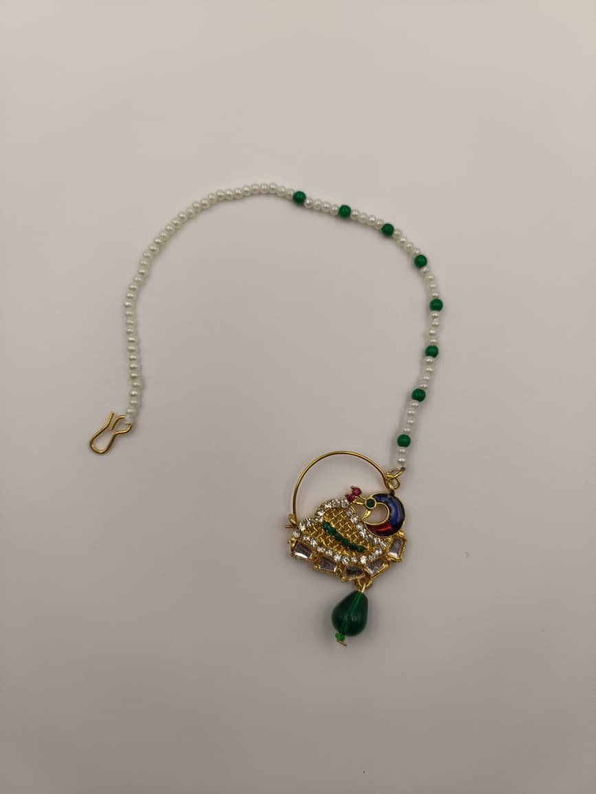 Perfect for weddings, traditional events, and special occasions, this nath pairs beautifully with Rajputi poshak and bridal outfits. Made with high-quality imitation materials, it is lightweight, comfortable to wear, and gives a rich royal appearance.
