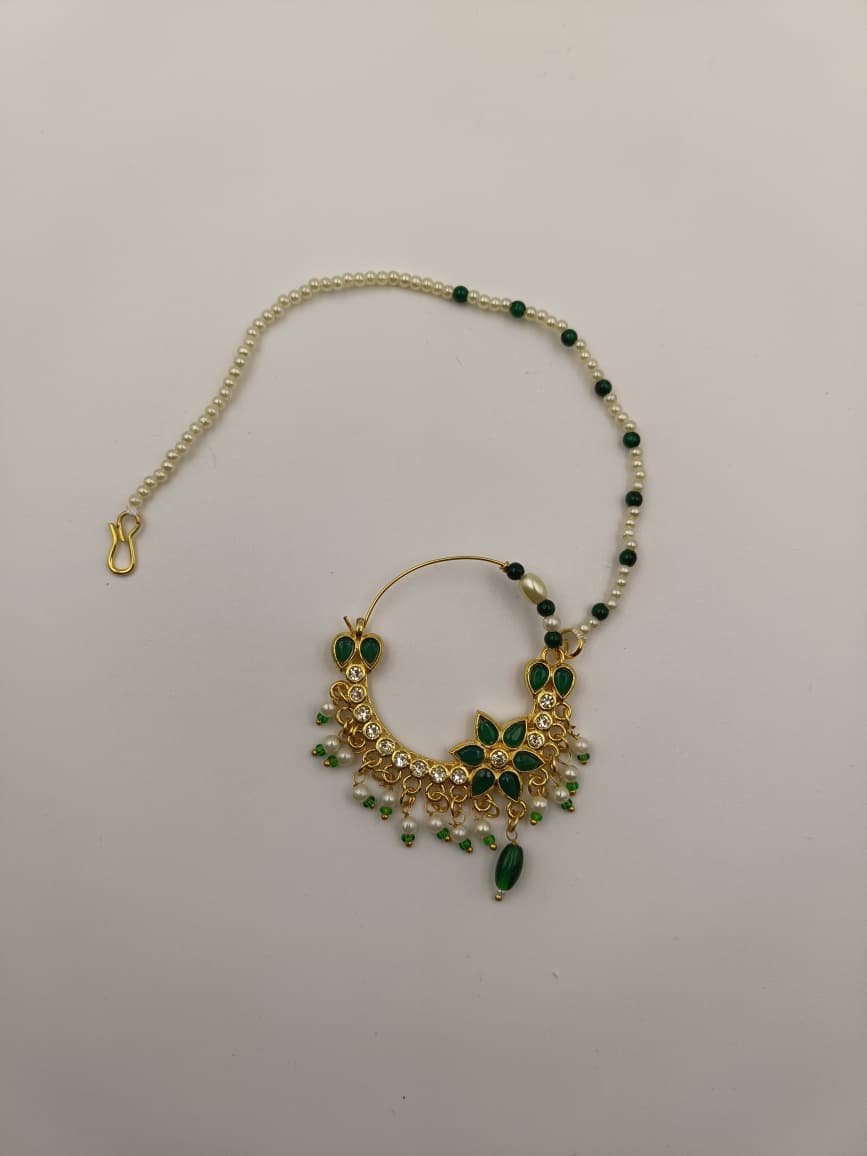 Perfect for weddings, traditional events, and special occasions, this nath pairs beautifully with Rajputi poshak and bridal outfits. Made with high-quality imitation materials, it is lightweight, comfortable to wear, and gives a rich royal appearance.